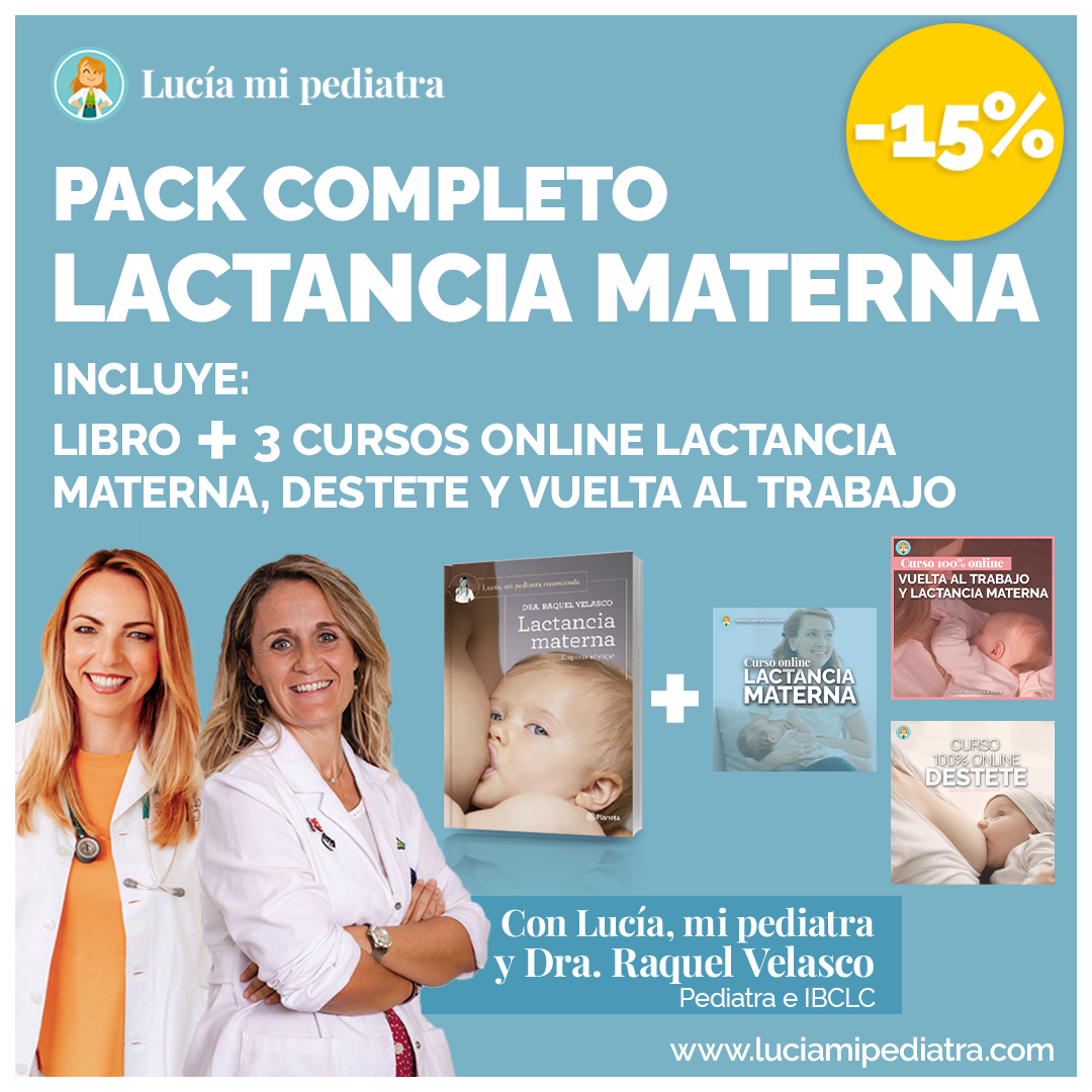 Este fantástico pack incluye: Curso online Lactancia Materna, Curso online Vuelta al trabajo y lactancia materna, Curso online Destete + Libro Lactancia Materna de la Dra. Raquel Velasco.